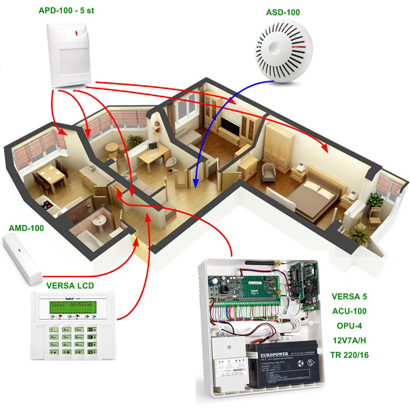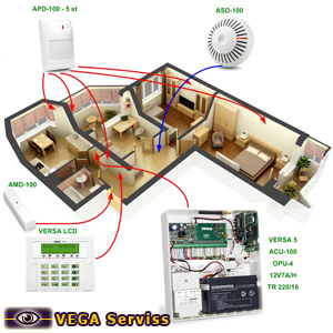 - viens bezvadu ugunsdrošības detektors (dūmu + temperatūras).