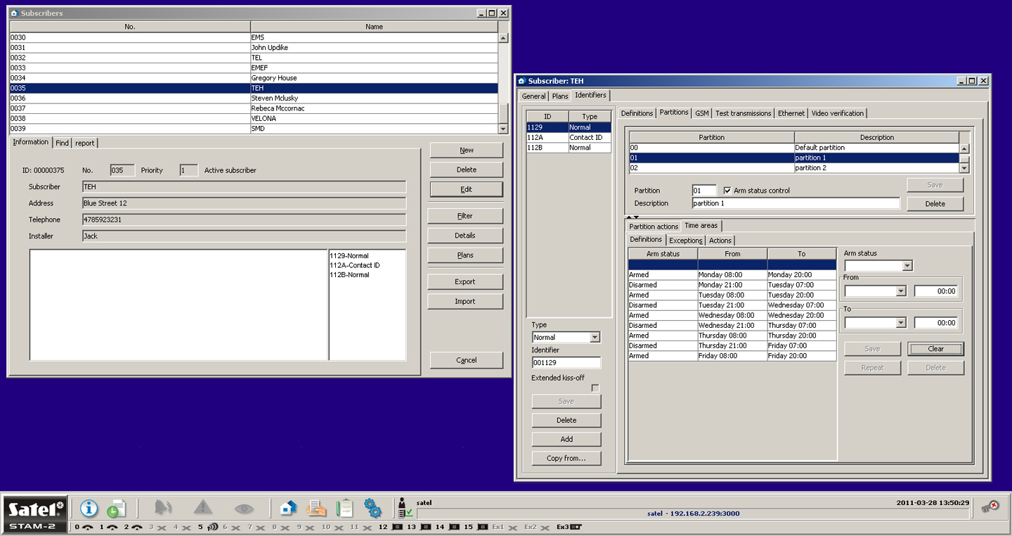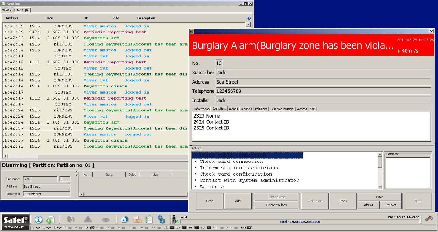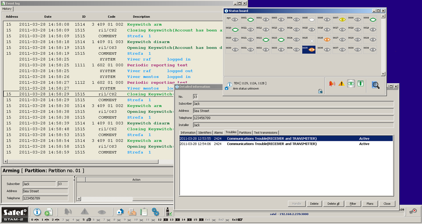 informācija par apsardzes sistēmas stāvokli.