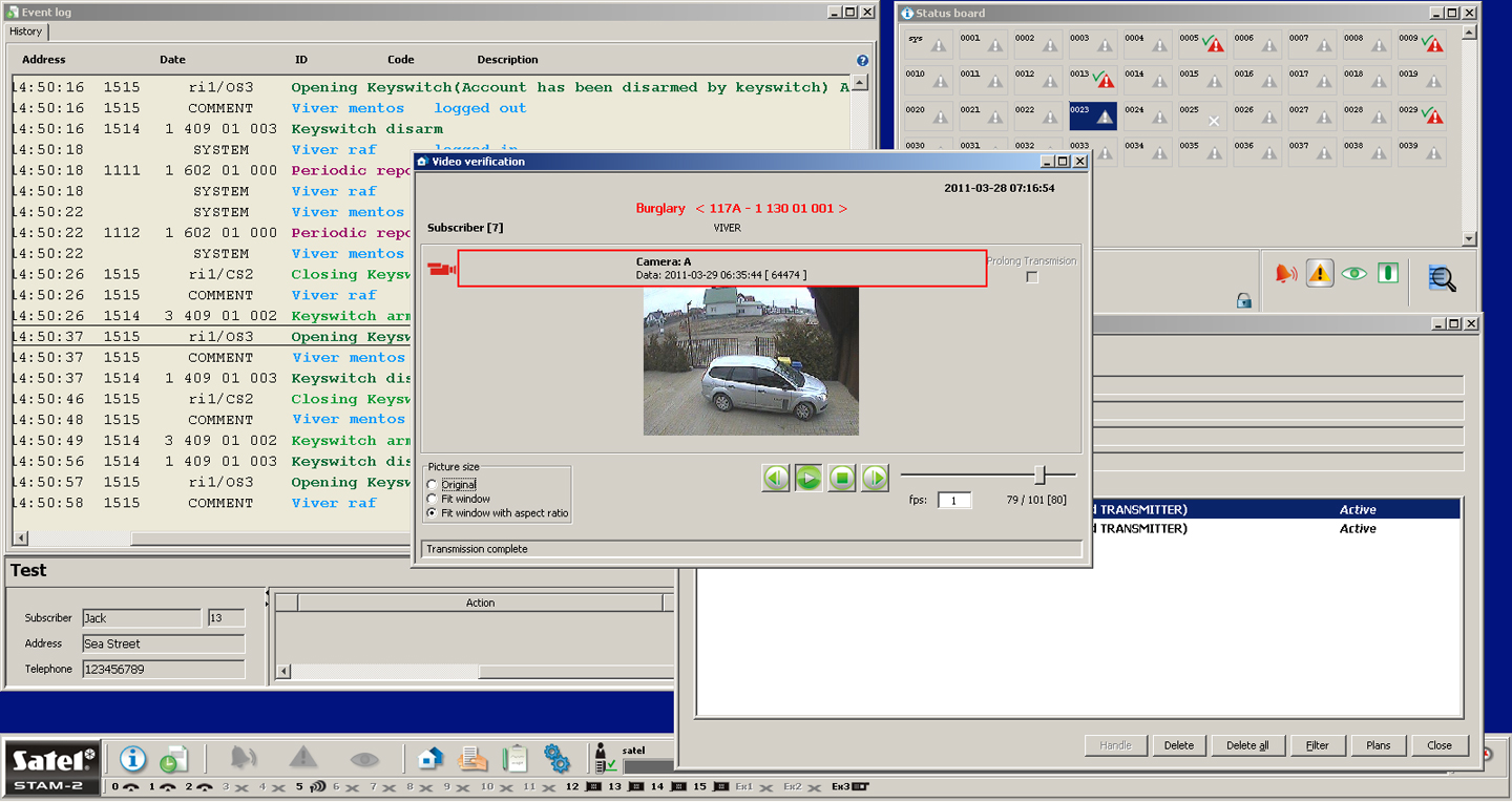 videokameras caur internetu vai telefona kanālu uz centrālo